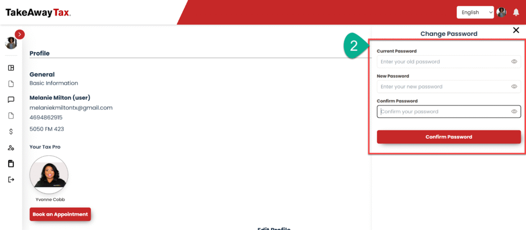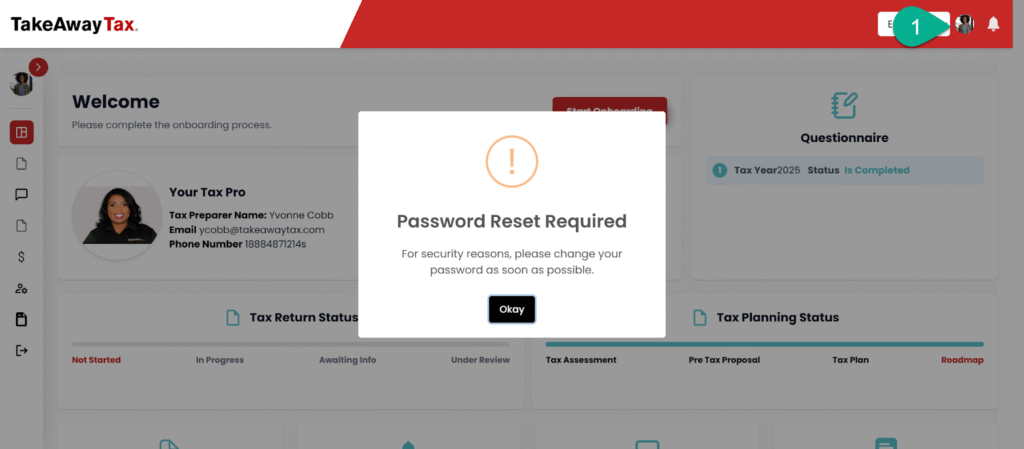 For security reasons, the TakeAway Tax portal allows you to change your password at any time after logging in. This guide walks you through the simple process of updating your password using your account profile settings.