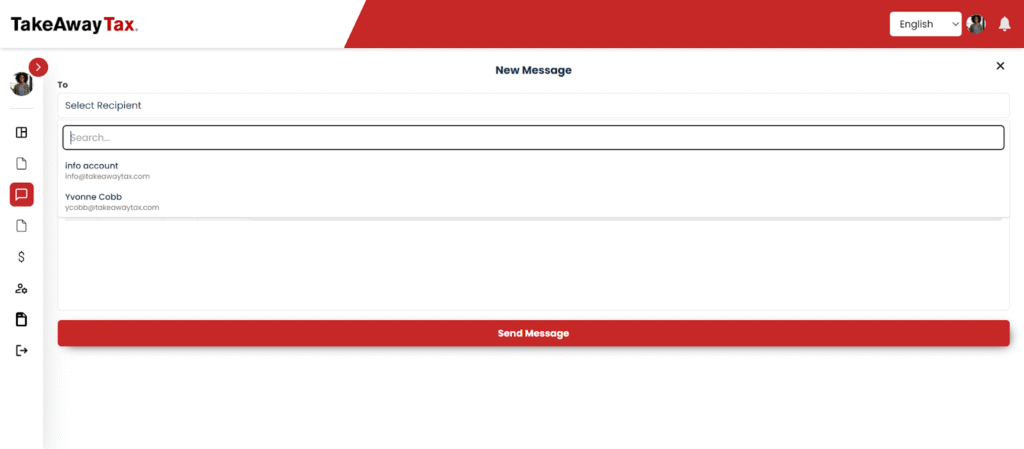 • Click + New Message to select a recipient (such as your tax pro or office account), add a subject, and send a secure message.​