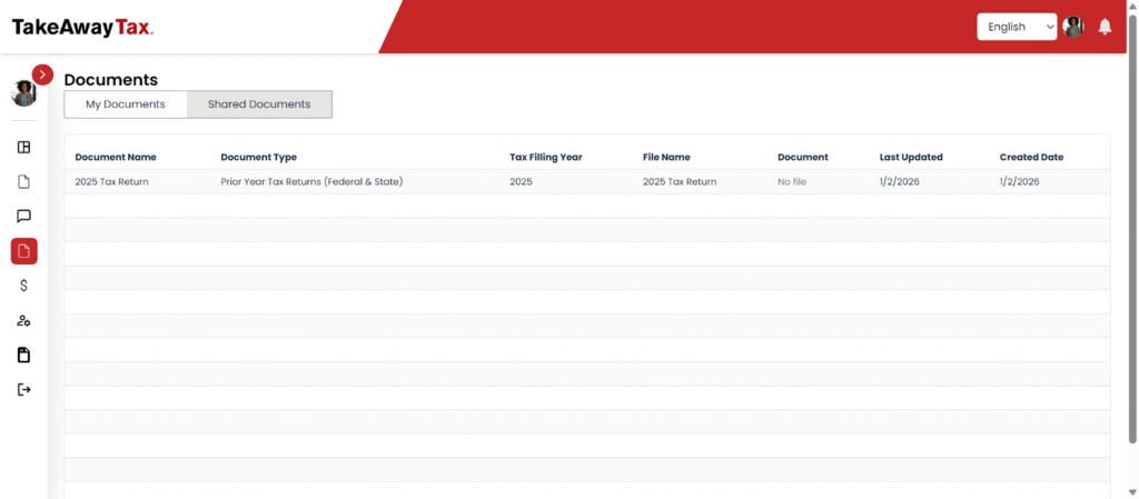 • See each document’s name, type, tax year, and last updated date.​